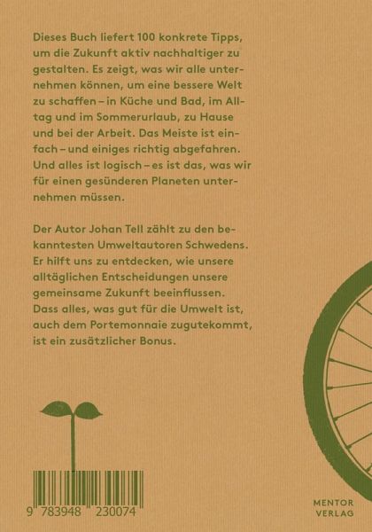 Als Verbraucher haben wir täglich die Wahl: Jedes Produkt, das wir kaufen, und jede Dienstleistung, die wir buchen, haben Einfluss auf Klima, Umwelt, Ressourcen und Menschen. Dieses Buch liefert 100 konkrete Tipps, um die Zukunft aktiv nachhaltiger zu gestalten. Es zeigt, was wir alle unternehmenkönnen, um eine bessere Welt zu schaffen - in Küche und Bad, im Alltag und im Sommerurlaub, zu Hause und bei der Arbeit. Das Meiste ist einfach - und einiges richtig abgefahren. Und alles ist logisch - es ist das, was wir für einen gesünderen Planeten unternehmen müssen. Dass alles, was gut für die Umwelt ist, auch dem Portemonnaie zugutekommt, ist ein zusätzlicher Bonus.