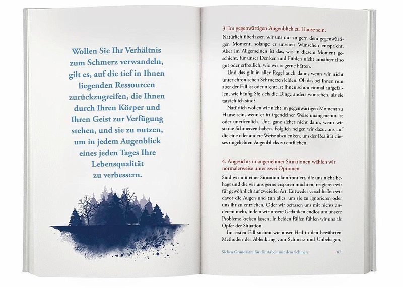 Achtsam mit dem Schmerz beginnt mit einem Überblick über sieben Grundhaltungen, die wir in uns entwickeln können. Mit diesen Grundhaltungen können wir Achtsamkeit in Bezug auf chronische Schmerzen und ihre unaufhörlichen Herausforderungen kultivieren. Sie basieren wesentlich darauf, achtsam zu atmen, mit intensiven Empfindungen zu arbeiten und sich mit Gedanken und Emotionen anzufreunden. Ein lebensbegleitendes Buch für alle, die genug davon haben, unter den Herausforderungen zu leiden, die chronische Schmerzen mit sich bringen, und wieder ein erfülltes Leben führen möchten. Dieser besonders liebevoll ausgestattete Ratgeber mit vielen schönen Illustrationen beinhaltet auch Audio-Links zu sieben geführten Meditationen.