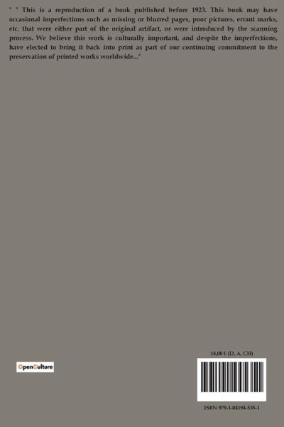 " " This is a reproduction of a book published before 1923. This book may have occasional imperfections such as missing or blurred pages, poor pictures, errant marks, etc. that were either part of the original artifact, or were introduced by the scanning process. We believe this work is culturally important, and despite the imperfections, have elected to bring it back into print as part of our continuing commitment to the preservation of printed works worldwide..."