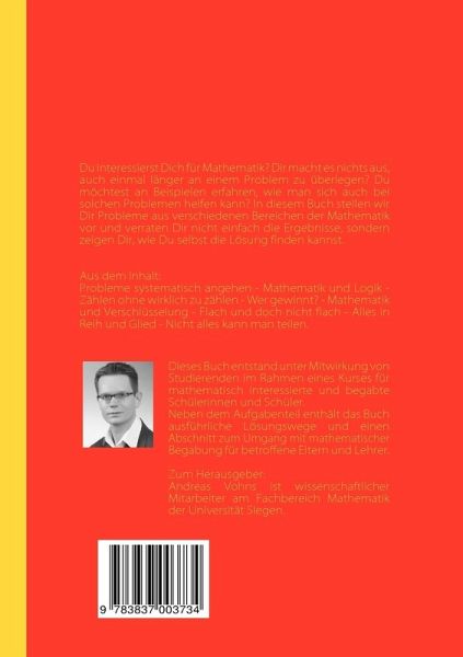 Du interessierst Dich für Mathematik? Dir macht es nichts aus, auch einmal länger an einem Problem zu überlegen? Du möchtest an Beispielen erfahren, wie man sich auch bei solchen Problemen helfen kann? In diesem Buch stellen wir Dir Probleme aus verschiedenen Bereichen der Mathematik vor und verraten Dir nicht einfach die Ergebnisse, sondern zeigen Dir, wie Du selbst die Lösung finden kannst.Aus dem Inhalt:Probleme systematisch angehen - Mathematik und Logik - Zählen ohne wirklich zu zählen - Wer gewinnt? - Mathematik und Verschlüsselung - Flach und doch nicht flach - Alles in Reih und Glied - Nicht alles kann man teilen.Dieses Buch entstand unter Mitwirkung von Studierenden im Rahmen eines Kurses für mathematisch interessierte und begabte Schülerinnen und Schüler.Neben dem Aufgabenteil enthält das Buch ausführliche Lösungswege und einen Abschnitt zum Umgang mit mathematischer Begabung für betroffene Eltern und Lehrer.