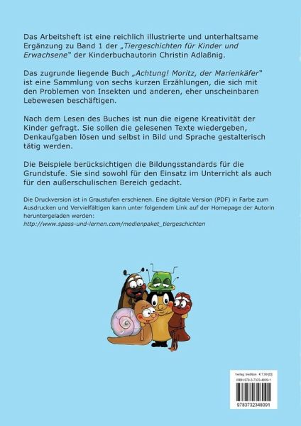 Das Arbeitsheft ist eine reichlich illustrierte und unterhaltsame Ergänzung zu Band I der "Tiergeschichten für Kinder und Erwachsene" der Kinderbuchautorin Christin Adlaßnig.