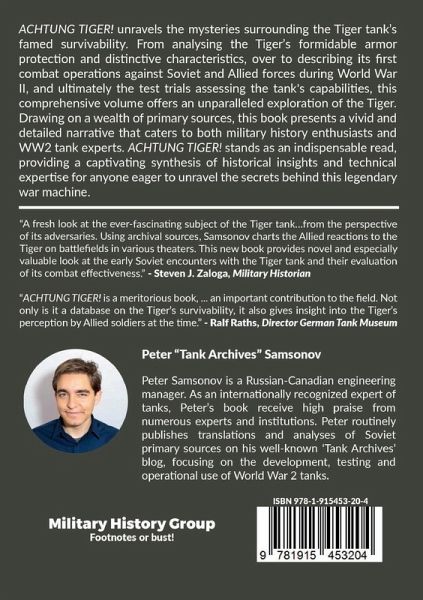 ACHTUNG TIGER! unravels the mysteries surrounding the Tiger tank's famed survivability. From analysing the Tiger's formidable armor protection and distinctive characteristics, over to describing its first combat operations against Soviet and Allied forces during World War II, and ultimately the test trials assessing the tank's capabilities, this comprehensive volume offers an unparalleled exploration of the Tiger. Drawing on a wealth of primary sources, this book presents a vivid and detailed narrative that caters to both military history enthusiasts and WW2 tank experts. ACHTUNG TIGER! stands as an indispensable read, providing a captivating synthesis of historical insights and technical expertise for anyone eager to unravel the secrets behind this legendary war machine.
