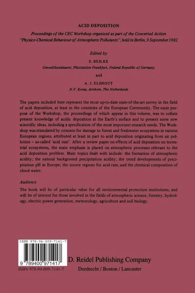 'Ibis volt.nne contains the proceedings of a \Orkshop on "Acid Deposition" held on September 9, 1982 at the Reichstag in Berlin. 'Ibe \Orkshop was organized within the frame\Ork of project COST 61a bis of the Commission of the European Communities (CEC), as a satellite meeting to the joint meeting of WOrking Parties 4 (Pollutant Cycles) and 5 (Transport and Modelling - Field Experiments) which was held on September 7 - 8 at the Federal Environmental Agency in Berlin. 'Ibe organisation of the scientific \Orkshop programme was in the hands of a CEC Acid Deposition Task Force consisting of nine scientists actively participating in projects COST 61a or COST 61a bis : Beilke (Federal Republic of Germany), Brosset (Sweden), Elshout (The Netherlands), Graven horst (France), Liberti (Italy), ott (CEC, Belgium), Penkett (United Kingdan), Sandroni (CEC, Italy) and Zephoris (France). 'Ibe \Orkshop progrcmne consisted of the presentation and discussion of five invited review papers covering different areas of the acid deposition problem and of ongoing \Ork on topics which are relevant to acid depo sition. Emphasis was placed on new scientific ideas and on indicating the most important areas of uncertainty, including the specification of a series of key research needs in the field of acid deposition. 'Ibis was done out of concern for danage to forest and freshwater ecosystems in various European regions attributed at least in part to acid deposition originating fran air pollution.