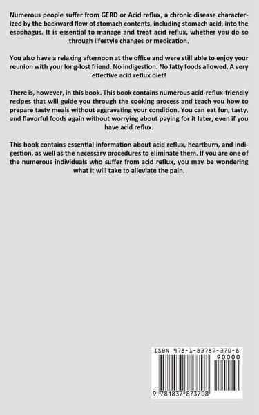 Numerous people suffer from GERD or Acid reflux, a chronic disease characterized by the backward flow of stomach contents, including stomach acid, into the esophagus. It is essential to manage and treat acid reflux, whether you do so through lifestyle changes or medication. You also have a relaxing afternoon at the office and were still able to enjoy your reunion with your long-lost friend. No indigestion. No fatty foods allowed. A very effective acid reflux diet! There is, however, in this book. This book contains numerous acid-reflux-friendly recipes that will guide you through the cooking process and teach you how to prepare tasty meals without aggravating your condition. You can eat fun, tasty, and flavorful foods again without worrying about paying for it later, even if you have acid reflux. This book contains essential information about acid reflux, heartburn, and indigestion, as well as the necessary procedures to eliminate them. If you are one of the numerous individuals who suffer from acid reflux, you may be wondering what it will take to alleviate the pain.