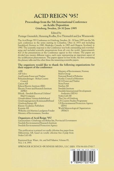 The acidification problem is still an area of great concern. Many areas in the world are subject to large, in some cases increased, deposition ofacidifying substances. Scientific research has played a crucial role in the discovery and exploration of the problems as well as a basis for the development ofcontrol strategies for the more than 25 years that have passed since Svante Oden first presented his results. Even today scientific research is important as a tool for policy, most clearly observed in the effect-oriented second sulphur protocol under the Convention on Long-range Transboundary Air Pollution signed in Oslo 1994. Without a close international scientific cooperation this protocol would have never been able to develop. The 5th Conference on Acidic Deposition Acid Reign '95? should be seen in the context ofthe ongoing process to strengthen the scientific background for policy. It was therefore a great pleasure for Sweden to host the conference. It became a success in many respects. First the number ofscientists and presentations made this conference the most comprehensive ever on acidic deposition. From the organizers, we were extremely pleased to see the number of participants and contributions from countries outside Western Europe and North America. These participants turned the focus to areas showing signs ofan increased acidification problem and areas still under heavy pressure from acidic deposition. An excursion to the Czech republic prior to the conference underpinned this interest.