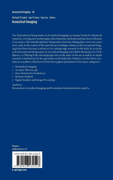 The 30th International Symposium on Acoustical Imaging was held in Monterey, California, US, March 1-4, 2009. This interdisciplinary Symposium has been taking place every two years since 1968 and forms a unique forum for advanced research, covering new technologies, developments, methods and theories in all areas of acoustics. In the course of the years the volumes in the Acoustical Imaging Series have developed and become well-known and appreciated reference works. Offering both a broad perspective on the state of the art in the field as well as an in-depth look at its leading edge research, this Volume 30 in the Series contains again an excellent collection of seventy papers presented in nine major categories: (1) Strain Imaging, (2) Biological and Medical Applications, (3) Acoustic Microscopy, (4) Non-Destructive Evaluation and Industrial Applications, (5) Components and Systems, (6) Geophysics and Underwater Imaging, (7) Physics and Mathematics, (8) Medical Image Analysis, (9) FDTD method and Other Numerical Simulations.