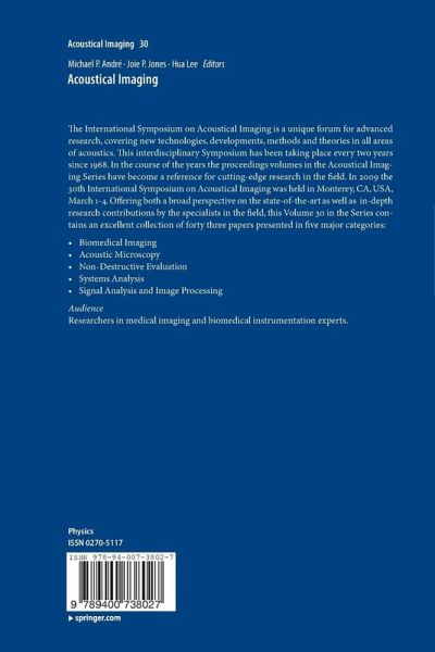 In the course of the years the volumes in the Acoustical Imaging Series have developed to become well-known and appreciated reference works. Offering both a broad perspective on the state of the art in the field as well as an in-depth look at its leading edge research, this Volume 30 in the Series contains again an excellent collection of contributions, presented in five major categories: