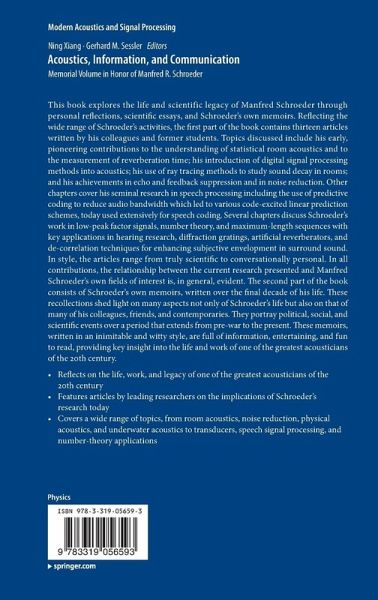 "The first section being a series of chapters addressing in varying levels of detail the links between the works of Manfred Schroeder and current acoustics research topics and, the second, a collection of memoirs by Manfred Schroeder covering a significant span of time and topics. ... any reader with an interest in any one of Manfred Schroeder's areas of work will find many elements of this collection insightful and interesting ... ." (Brian F. G. Katz, Journal of the Audio Engineering Society, Vol. 65 (4), April, 2017)