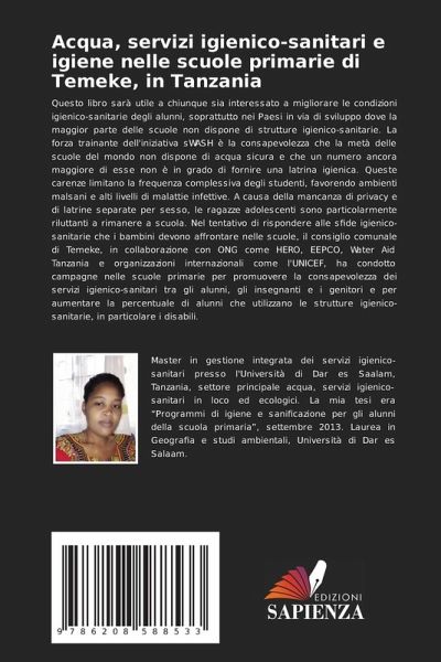 Questo libro sarà utile a chiunque sia interessato a migliorare le condizioni igienico-sanitarie degli alunni, soprattutto nei Paesi in via di sviluppo dove la maggior parte delle scuole non dispone di strutture igienico-sanitarie. La forza trainante dell'iniziativa sWASH è la consapevolezza che la metà delle scuole del mondo non dispone di acqua sicura e che un numero ancora maggiore di esse non è in grado di fornire una latrina igienica. Queste carenze limitano la frequenza complessiva degli studenti, favorendo ambienti malsani e alti livelli di malattie infettive. A causa della mancanza di privacy e di latrine separate per sesso, le ragazze adolescenti sono particolarmente riluttanti a rimanere a scuola. Nel tentativo di rispondere alle sfide igienico-sanitarie che i bambini devono affrontare nelle scuole, il consiglio comunale di Temeke, in collaborazione con ONG come HERO, EEPCO, Water Aid Tanzania e organizzazioni internazionali come l'UNICEF, ha condotto campagne nelle scuole primarie per promuovere la consapevolezza dei servizi igienico-sanitari tra gli alunni, gli insegnanti e i genitori e per aumentare la percentuale di alunni che utilizzano le strutture igienico-sanitarie, in particolare i disabili.