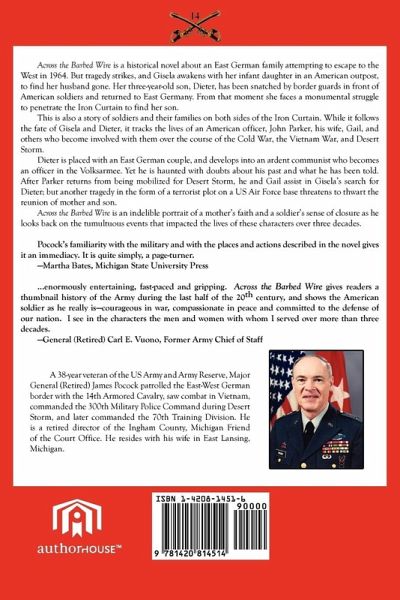 Across the Barbed Wire is a historical novel about an East German family attempting to escape to the West in 1964. But tragedy strikes, and Gisela awakens with her infant daughter in an American outpost, to find her husband gone. Her three-year-old son, Dieter has been snatched by border guards in front of American soldiers and returned to East Germany. From that moment she faces a monumental struggle to penetrate the Iron Curtain to find her son. This is also a story of soldiers and their families on both sides of the Iron Curtain. While it follows the fete of Gisela and Dieter, it tracks the lives of an American officer, John Parker, his wife, Gail, and others who become involved with them over the course of the Cold War, the Vietnam War, and Desert Storm. Across the Barbed Wire is an indelible portrait of a mother's faith and a soldier's sense of closure as he looks back on the tumultuous events that impacted the lives of these characters over three decades. Pocock's familiarity with the military and with the places and actions described in the novel gives it an immediacy. It is quite simply, a page-turner. -Martha Bates, Michigan State University Press