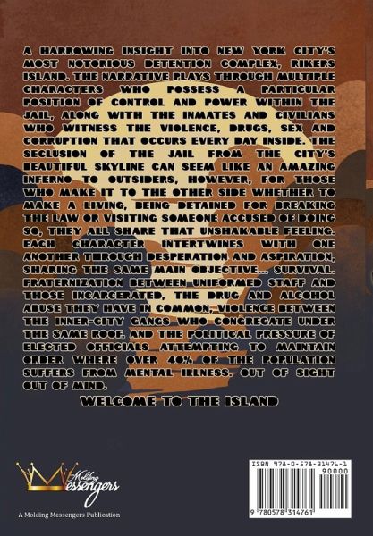 A harrowing insight into New York City's most notorious detention complex, Rikers Island. This novel plays through multiple characters who possess control and power within the jail, along with the inmates and civilians who witness the violence, drugs, sex, and corruption that occurs every day inside. The seclusion of the jail from the city's beautiful skyline can seem like an amazing inferno to outsiders, however, for those who make it to the other side whether to make a living, being detained for breaking the law or visiting someone accused of doing so, they all share that unshakable feeling. WELCOME TO THE ISLAND!