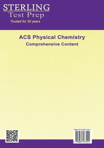 ASC Physical Chemistry bestsellerThousands of students use Sterling Test Prep study aids to achieve high test scores! Comprehensive review of physical chemistry topics tested on ACS, covering the knowledge areas necessary to answer test questions. Understanding key concepts, extracting and analyzing information, and distinguishing between similar answer choices are more effective than mere memorization. This book helps you master physical chemistry college content and develop the ability to apply your knowledge on the exam. This text is clearly presented and systematically organized to provide targeted ACS Physical Chemistry preparation. Learn the scientific foundations and essential concepts needed to master the material and answer exam questions. These review chapters teach important physical chemistry principles and relationships and how they apply to questions. From the foundations of physical and chemical properties of matter to complex mechanisms of atomic particles, you will develop a better understanding of chemical phenomena on microscopic and macroscopic levels. This book is an essential overview of chemical kinetics, reaction mechanisms, thermodynamics, and quantum chemistry concepts. Learn about intra and intermolecular interactions, properties of gases, liquids and solids, chemical and phase equilibria, atomic theory and electronic structure. Experienced chemistry instructors analyzed the test content and developed this study material that builds knowledge and skills crucial for success. Our test preparation experts systematized the content to match the current ACS exam for targeted and effective learning.