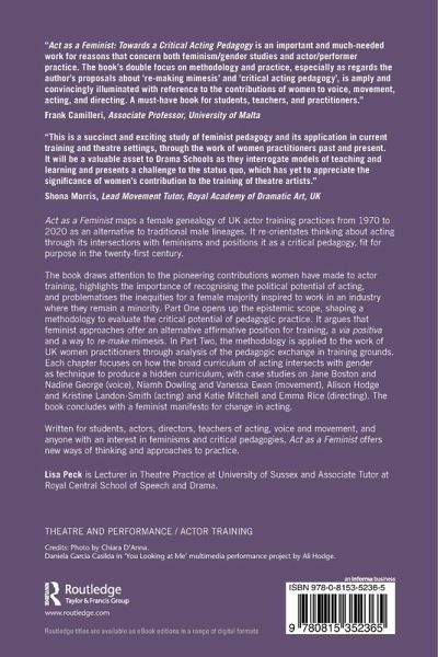Act as a Feminist maps a female genealogy of UK actor training practices from 1970-2020 as an alternative to traditional male lineages. It re-orientates thinking about acting through its intersections with feminisms and positions it as a critical pedagogy, fit for purpose in the twenty-first century.