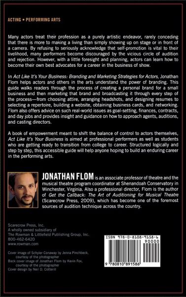 In Act Like It's Your Business:Branding and Marketing Strategies for Actors, Jonathan Flom helps actors and others in the arts understand the power of branding. This guide walks the reader through the process of creating a personal brand for his or her small business and then marketing that brand and broadcasting it through every step of the process-from choosing clothing, arranging headshots, and designing resumes to selecting a repertoire, building a website, obtaining business cards, and networking. The book also offers advice on such real-world issues as goal-setting, finances, contracts, and day jobs, as well as provides insight and guidance on how to approach agents, auditions, and casting directors. Structured logically and step-by-step, this accessible guide will become the standard for nearly anyone hoping to build an enduring career in the performing arts.