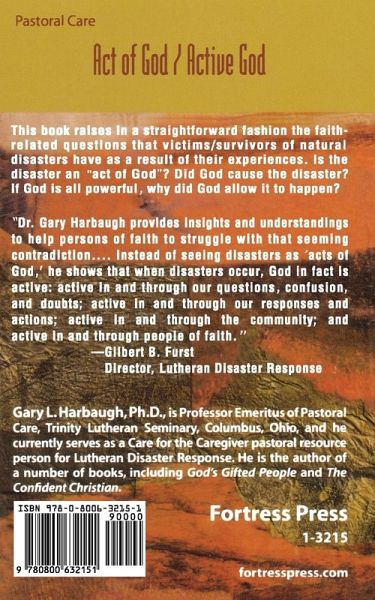 This book raises in a straightforward fashion the faith-related questions that the victims/survivors of natural disasters have as a result of this experience. Is the disaster an "act of God?" Did God cause the disaster? If God is all powerful, why did God allow it to happen? The author then goes on to argue that God is active in our questions, confusions, and doubts, as well as in those who help - either individually or as communities of faith. He discusses the dynamics of the caregiver/care receiver relationship from the perspective of the care receiver to provide insights into how natural disaster victims can face an uncertain future with hope and faith. A final chapter for caregivers provides help for the emotional and spiritual health of those who assist others in times of disaster. Appendices provide practical, close-to-the-ground tools.