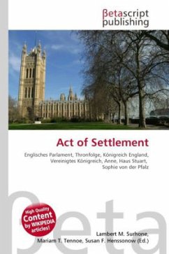 High Quality Content by WIKIPEDIA articles! High Quality Content by WIKIPEDIA articles! Mit dem Act of Settlement (dt. Grundordnung) schuf das englische Parlament 1701 die neue Grundlage der Thronfolge im Königreich England. Als Thronfolgeregelung ist der Act of Settlement bis heute im Vereinigten Königreich gültig. Der Act of Settlement schreibt fest, dass nach dem Tod der kinderlosen Königin Anne, der letzten Protestantin im Haus Stuart, das Recht der Thronfolge auf die protestantischen Nachkommen der Sophie von der Pfalz, Tochter der Elisabeth Stuart und somit die nächste lebende protestantische Verwandte des Königshauses, und damit an das Haus Hannover übergehen sollte.