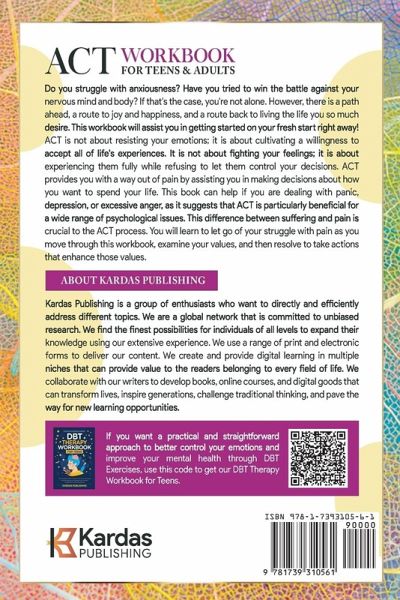 Find out how to heal the past, live in the present, and create a new future. In this 7 Week's program, you will learn how to understand your emotions and accept them step by step. Acceptance and commitment therapy (ACT) is a contemporary, scientifically supported psychotherapy that examines why we suffer and what it means to be mentally sound. ACT is a versatile, all-encompassing approach for addressing a wide range of trauma-related conditions, including PTSD, substance abuse, stress, anxiety symptoms, moral damage, severe pain, humiliation, suicidal behavior, sleeplessness, complicated grief, reactive attachment disorder, sexual issues, and more. You'll discover how your mind may entrap you, locking you in a cycle of tension and worry. You will also learn how to strengthen your capacity for tolerance, awareness, compassion, and kindness. The author presents thorough insights, case examples, and practical activities in this interesting and easy-to-read workbook to explain how to work with anxiety rather than against it. Using cutting-edge approaches and ideas, you will discover ways to change anxiety and create a richer and more satisfying life. Find out how to heal the past, live in the present, and create a new future with these activities and exercises. In this compassion-based, exposure-centered approach, you will learn:Untangling yourself from difficult thoughts and feelings. Developing a holistic understanding of self. Flexible exposure can help you heal from distressing memories. Engaging with your values and live by them. Breaking free from the shackles of separation. Self-compassion replaces self-hatred and much more. **BONUS to our readers inside this book: unlimited access to Printable Worksheets: 30-Day Challenge Tracker or Gratitude Journal for Kids & Teens! Our readers are awarded even more freebies. ¿¿ BUY NOW and learn how to expand your thinking flexibility, obtain some space from your thinking, and move toward a life filled with values and purpose.