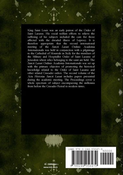The publication includes several academic articles presented during the second International meeting of the Sancti Lazari Ordinis Academia Internationalis whose objective is to promote the historical knowledge related to the Military and Hospitaller Order of Saint Lazarus of Jerusalem, and other Crusader and related orders of chivalry as this relates to the hierarchy, their components, their glorious traditions and ancient history, as well as their relations with the Roman Catholic Church and with other churches that profess the faith of Christ.