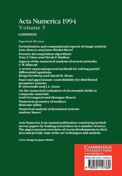 Acta Numerica has established itself as the prime forum for the presentation of definitive reviews of numerical analysis topics. The invited papers by leaders in their respective fields allow researchers and graduate students alike quickly to grasp the then current trends and developments of 1994. Highlights of the year's issue are articles on domain decomposition, mesh adaption, pseudospectral methods and neural networks.