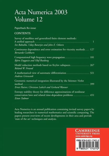 Acta Numerica surveys annually the most important developments in numerical mathematics and scientific computing. The subjects and authors of the substantive survey articles are chosen by a distinguished international editorial board so as to report the most important and timely developments in a manner accessible to the wider community of professionals with an interest in scientific computing. Acta Numerica volumes have proved to be a valuable tool not only for researchers and professionals wishing to develop their understanding of numerical techniques and algorithms and follow new developments, but also as an advanced teaching aid at colleges and universities. Many of the original articles have been used as the prime resource for graduate courses. This particular volume was originally published in 2003.