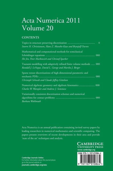 Acta Numerica is an annual publication containing invited survey papers by leading researchers in numerical mathematics and scientific computing. The papers present overviews of recent developments in their area and provide state-of-the-art techniques and analysis.