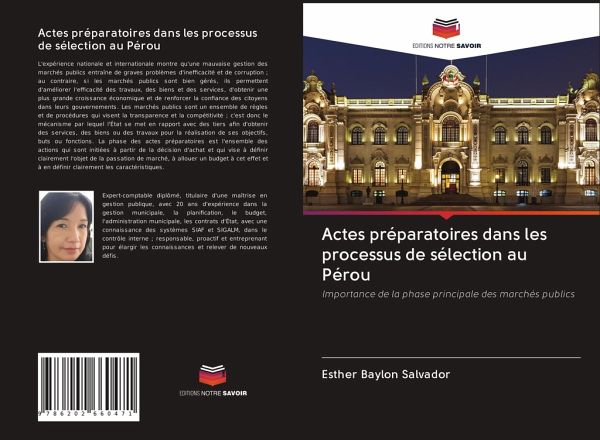 L'expérience nationale et internationale montre qu'une mauvaise gestion des marchés publics entraîne de graves problèmes d'inefficacité et de corruption ; au contraire, si les marchés publics sont bien gérés, ils permettent d'améliorer l'efficacité des travaux, des biens et des services, d'obtenir une plus grande croissance économique et de renforcer la confiance des citoyens dans leurs gouvernements. Les marchés publics sont un ensemble de règles et de procédures qui visent la transparence et la compétitivité ; c'est donc le mécanisme par lequel l'État se met en rapport avec des tiers afin d'obtenir des services, des biens ou des travaux pour la réalisation de ses objectifs, buts ou fonctions. La phase des actes préparatoires est l'ensemble des actions qui sont initiées à partir de la décision d'achat et qui vise à définir clairement l'objet de la passation de marché, à allouer un budget à cet effet et à en définir clairement les caractéristiques.