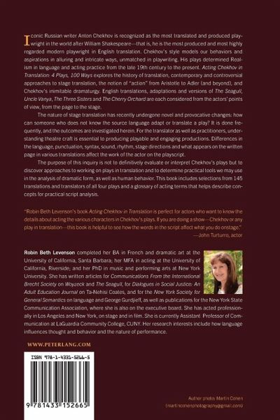 I am in awe of Robin Beth Levenson's scholarship and the detail of her research, as well as her ability to explain to the reader how the various translations of Chekhov's plays create such different blessings and curses for the actor trying to say the right words. This book is an amazing and unique achievement - Bruce Katzman, actor, teacher, director, www.secretsofchekhov.com