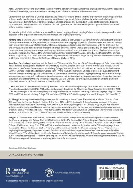 An essential guide for intermediate to advanced level second language learners, Acting Chinese provides a unique and modern approach to the acquisition of both cultural knowledge and language proficiency.