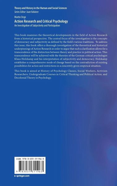 This book examines the theoretical developments in the field of Action Research from a historical perspective. The central focus of the investigation is the concepts of democracy and subjectivity as defined by the field's various traditions. To address this issue, this book offers a thorough investigation of the theoretical and historical underpinnings of Action Research in order to argue that such a clarification allows for a transcendence of the distinction between theory and practice in political action. This transcendence will be achieved with the theories of the German critical psychologist Klaus Holzkamp and his interpretation of subjectivity and democracy. Holzkamp establishes a comprehensive mode of change based on the contradiction of existing possibilities for action and restrictions in a concretely given empirical situation.
