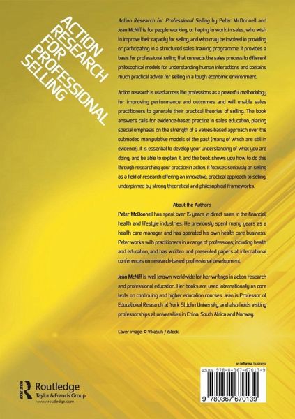 Action Research for Professional Selling by Peter McDonnell and Jean McNiff is for people working, or hoping to work in sales, who wish to improve their capacity for selling, and who may be involved in providing or participating in a structured sales training programme. It provides a basis for professional selling that connects the sales process to different philosophical models for understanding human interactions and contains much practical advice for selling in a tough economic environment. Action research is used across the professions as a powerful methodology for improving performance and outcomes and will enable sales practitioners to generate their practical theories of selling. The book answers calls for evidence-based practice in sales education, placing special emphasis on the strength of a values-based approach over the outmoded manipulative models of the past (many of which are still in evidence). It is essential to develop your understanding of what you are doing, and be able to explain it, and the book shows you how to do this through researching your practice in action. It focuses seriously on selling as a field of research offering an innovative, practical approach to selling, underpinned by strong theoretical and philosophical frameworks.