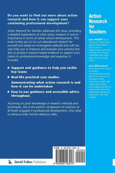 Assuming no prior knowledge of research methods and techniques, this book is the perfect companion for teachers at all levels undergoing professional development who need to enhance their formal reflection skills. Providing a detailed explanation of what action research is and its importance in terms of whole school development, this book invites the teachers to try out educational research for themselves and adopt an investigative attitude that will help improve and evaluate practice. It includes: * Support and guidance that help you tackle key issues * "Real-life" practical case studies that underline what action research is and how it can be effectively used.