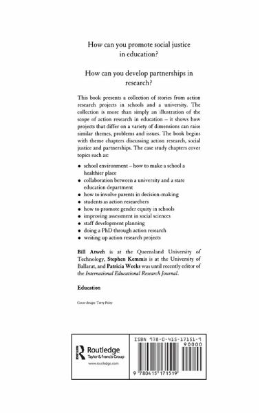 This book presents a collection of stories from action research projects in schools and a university. This collection is more than simply an illustration of the scope of action research in education - it shows how projects that differ on a variety of dimensions can raise similar themes, problems and issues. The book begins with theme chapters discussing action research, social justice and partnerships in research. The case study chapters cover topics such as: * school environment - how to make a school a healthier place to be * parents - how to involve them more in decision-making * students as action researchers * a state system - a collaborative effort between university staff and a state education department * gender - how to promote gender equity in schools * improving assessment in the social sciences * staff development planning * doing a PhD through action research * writing up action research projects.