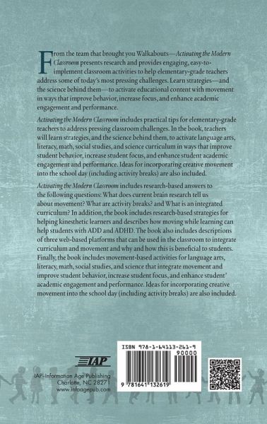 From the team that brought you Walkabouts - Activating the Modern Classroom presents research and provides engaging, easy-to-implement classroom activities to help elementary-grade teachers address some of today's most pressing challenges. Learn strategies - and the science behind them - to activate educational content with movement in ways that improve behavior, increase focus, and enhance academic engagement and performance. Activating the Modern Classroom includes practical tips for elementary-grade teachers to address pressing classroom challenges. In the book, teachers will learn strategies, and the science behind them, to activate language arts, literacy, math, social studies, and science curriculum in ways that improve student behavior, increase student focus, and enhance student' academic engagement and performance. Ideas for incorporating creative movement into the school day (including activity breaks) are also included. Activating the Modern Classroom includes research-based answers to the following questions: What does current brain research tell us about movement? What are activity breaks? and What is an integrated curriculum? In addition, the book includes research-based strategies for helping kinesthetic learners and describes how moving while learning can help students with ADD and ADHD. The book also includes descriptions of three web-based platforms that can be used in the classroom to integrate curriculum and movement and why and how this is beneficial to students. Finally, the book includes movement-based activities for language arts, literacy, math, social studies, and science that integrate movement and improve student behavior, increase student focus, and enhance student' academic engagement and performance. Ideas for incorporating creative movement into the school day (including activity breaks) are also included.