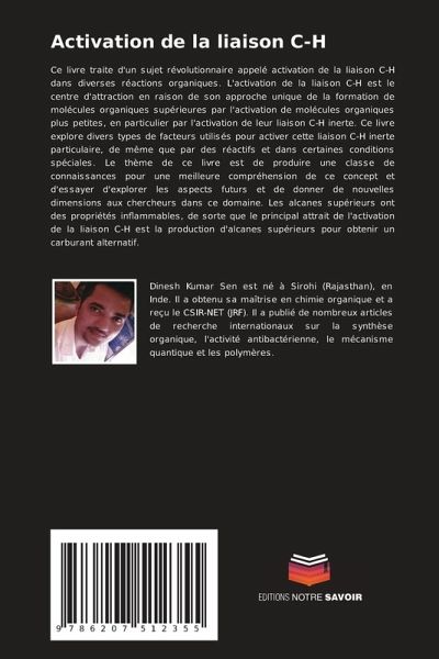 Ce livre traite d'un sujet révolutionnaire appelé activation de la liaison C-H dans diverses réactions organiques. L'activation de la liaison C-H est le centre d'attraction en raison de son approche unique de la formation de molécules organiques supérieures par l'activation de molécules organiques plus petites, en particulier par l'activation de leur liaison C-H inerte. Ce livre explore divers types de facteurs utilisés pour activer cette liaison C-H inerte particulaire, de même que par des réactifs et dans certaines conditions spéciales. Le thème de ce livre est de produire une classe de connaissances pour une meilleure compréhension de ce concept et d'essayer d'explorer les aspects futurs et de donner de nouvelles dimensions aux chercheurs dans ce domaine. Les alcanes supérieurs ont des propriétés inflammables, de sorte que le principal attrait de l'activation de la liaison C-H est la production d'alcanes supérieurs pour obtenir un carburant alternatif.