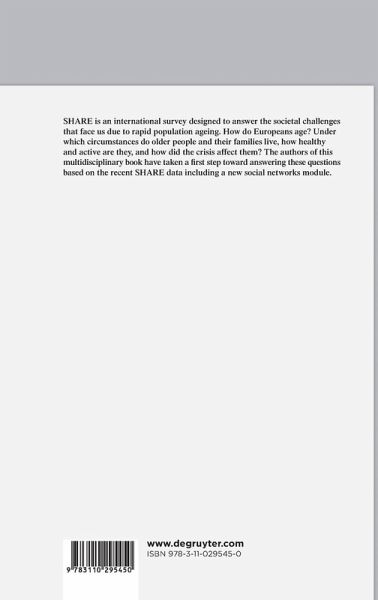 SHARE is an international survey designed to answer the societal challenges that face us due to rapid population ageing. How do Europeans age? Under which circumstances do older people and their families live, how healthy and active are they, and how did the crisis affect them? The authors of this multidisciplinary book have taken a first step toward answering these questions based on the recent SHARE data including a new social networks module.