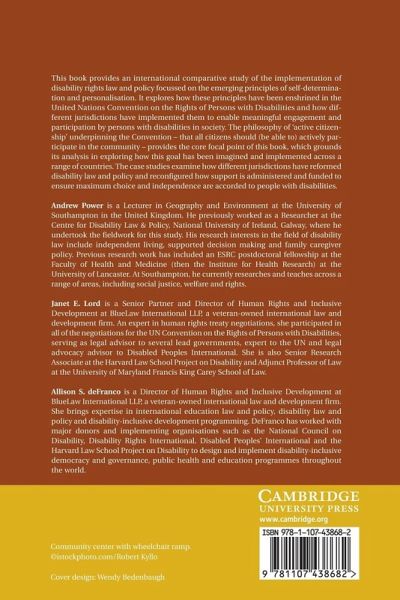 This book provides an international comparative study of the implementation of disability rights law and policy focused on the emerging principles of self-determination and personalisation. It explores how these principles have been enshrined in the United Nations Convention on the Rights of Persons with Disabilities and how different jurisdictions have implemented them to enable meaningful engagement and participation by persons with disabilities in society. The philosophy of 'active citizenship' underpinning the Convention - that all citizens should (be able to) actively participate in the community - provides the core focal point of this book, which grounds its analysis in exploring how this goal has been imagined and implemented across a range of countries. The case studies examine how different jurisdictions have reformed disability law and policy and reconfigured how support is administered and funded to ensure maximum choice and independence is accorded to people with disabilities.