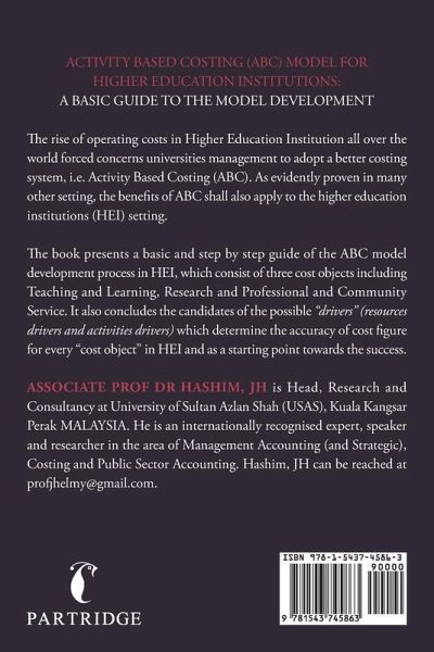 ACTIVITY BASED COSTING (ABC) MODEL FOR HIGHER EDUCATION INSTITUTIONS: A BASIC GUIDE TO THE MODEL DEVELOPMENT The rise of operating costs in Higher Education Institution all over the world forced concerns universities management to adopt a better costing system, i.e. Activity Based Costing (ABC). As evidently proven in many other setting, the benefits of ABC shall also apply to the higher education institutions (HEI) setting. The book presents a basic and step by step guide of the ABC model development process in HEI, which consist of three cost objects including Teaching and Learning, Research and Professional and Community Service. It also concludes the candidates of the possible "drivers" (resources drivers and activities drivers) which determine the accuracy of cost figure for every "cost object" in HEI and as a starting point towards the success.