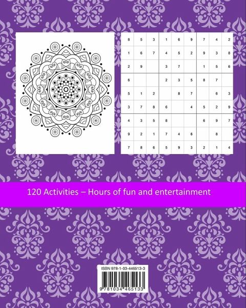 This fun and entertaining Activity Book for Adults has 120 activities for you to enjoy, featuring puzzles, coloring pages, and games that can be played with two players. Details: Large 8x10 Adult Activity Book. Instructions for puzzles and games. Solutions provided. Word Search - US spellings. Sudoku. Mazes. Number Search. Mandalas. Patterns. Dots and Boxes. Four Circles. Tic Tac Toe.