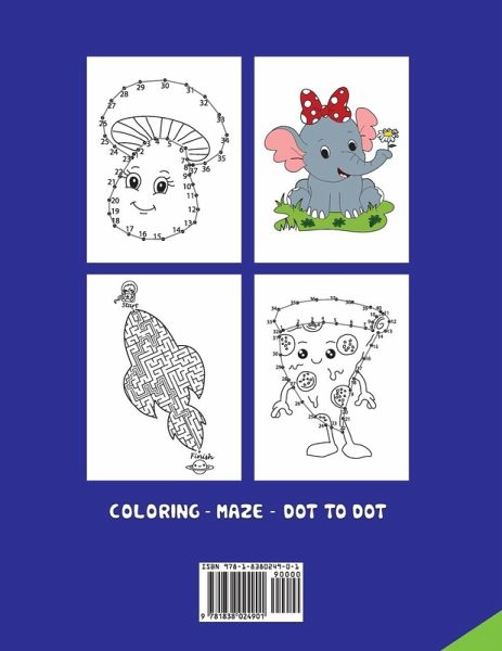 A Fun Learning Activity Book for Kids Packed with 100 Different Children's Activities. Learning should always be fun, especially when it comes to kids. You can get the dot to dot, mazes, kids coloring books, and a lot more to make children's learning process easy and enjoyable. What could be better than that? One BIG book that contains all these activities to engage your kids for hours. Whether you are looking for preschool activity books or activities for 5 year olds, this book won't disappoint you or your kids. You can give it to your kids to keep them busy, or you can spend some quality time with them coloring the pages, connecting the dots, or solving the mazes. This Exciting and Relaxing Activity Book for Kids Has: 100 Fun Activities Coloring Pages Connect the Dots Maze Puzzles So if you are looking for activity books for kids, you may have found the one. It will make a perfect gift for kids. Get it NOW!