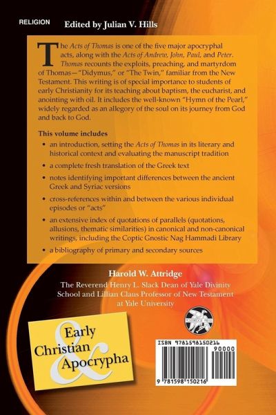 The Acts of Thomas is one of five surviving apocryphal acts that recount the adventures of the apostles as they carried the Christian message to the far reaches of their world. This volume features a complete fresh translation of the Greek text; notes identifying important differences between the ancient Greek and Syriac versions; an extensive index of quotations of parallels in canonical and non-canonical writings; and a bibliography of primary and secondary sources.