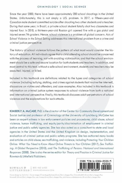 Acts of School Violence in the School Setting provides accurate and practical information on school violence at a national and international level to students studying crime and criminal justice. In addition, this book provides information on victimization as it is perpetrated through the internet and focused upon students.