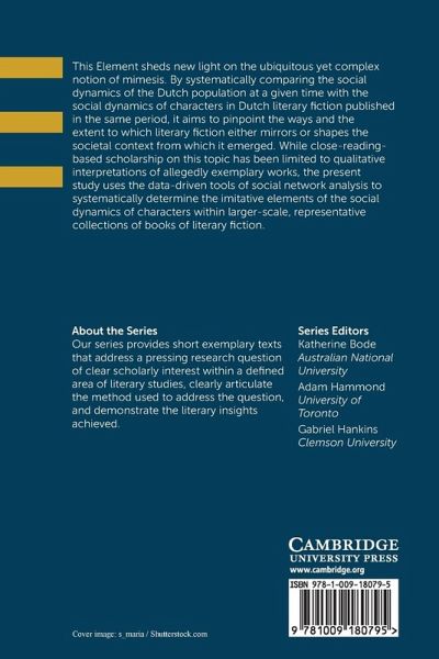 This Element sheds a new light on the ubiquitous yet complex notion of mimesis. By systematically comparing the social dynamics of the Dutch population at a given time with the social dynamics of characters in Dutch literary fiction published in the same period.