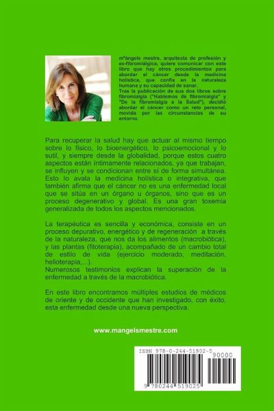 Para recuperar la salud hay que actuar al mismo tiempo sobre lo físico, lo bioenergético, lo psicoemocional y lo sutil, y siempre desde la globalidad, porque estos cuatro aspectos están íntimamente relacionados, ya que trabajan, se influyen y se condicionan entre sí de forma simultánea. Esto lo avala la medicina holística o integrativa, que también afirma que el cáncer no es una enfermedad local que se sitúa en un órgano u órganos, sino que es un proceso degenerativo y global. Es una gran toxemia generalizada de todos los aspecto mencionados. La terapéutica es sencilla y económica, consiste en un proceso depurativo, energético y de regeneración a través de la naturaleza, que nos da los alimentos (macrobiótica) y las plantas (fitoterapia), acompañado de un cambio total de estilo de vida (ejercicio moderado, meditación, helioterapia,...) En este libro encontramos múltiples estudios de médicos de oriente y de occidente que han investigado, con éxito, esta enfermedad desde una nueva perspectiva.