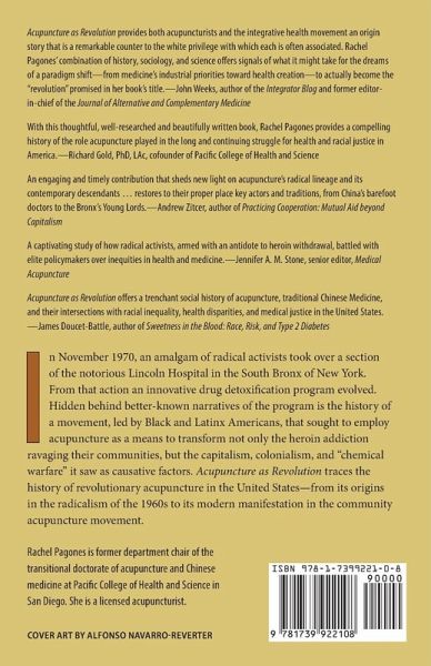 Many in the global West have heard something about acupuncture as a treatment for pain relief; they may even have learned of its use in treating opioid addiction. But few know that, in the early 1970s, acupuncture was employed as a means of social and political revolution by Black, Latinx, and radical left-wing activists, inspired by the barefoot doctors of Mao Zedong's Communist revolution. Led by Mutulu Shakur, a charismatic member of the Republic of New Afrika, these young and idealistic people learned to apply acupuncture in the gritty confines of Lincoln Hospital, in the South Bronx of New York. The derelict public hospital, long known as "the Butcher Shop," became an unlikely source of energy and hope as the activists successfully helped people from the community recover from heroin addiction. The acupuncturists - some of them recovering from heroin addiction themselves - employed a combination of needling points in the ear with counseling and "political education"; for instance, taking clients to witness the trials of political prisoners (people imprisoned for their political beliefs or activities). By the late 1970s, the activists' radical approach led to their forced removal from Lincoln. But Shakur and others formed the Black Acupuncture Advisory Association of North America (BAAANA) and founded a college to train a new generation of acupuncturists in the fine art of traditional Chinese medicine. The fundamental principal was healthcare as a human right. The goal was liberation of people oppressed by racism. The college had a short life; it was closed after an FBI raid in connection with the lethal armed robbery of a Brink's truck. Yet over three decades, the spirit of revolutionary acupuncture did not die, and neither did the issues that forced its rise, including drug addiction, racism, and social and health care inequities. Inspired by the radical acupuncturists of the 1970s, another group - the People's Organization of Community Acupuncture - founded the community acupuncture movement and took up the mantle of revolution. They, too, proclaim health care as a human right for people marginalized by society - and seek to give back that right through the art of inserting fine needles. Acupuncture as Revolution highlights a little-known intersection of acupuncture, leftist movements of the 1970s, and the global influence on healthcare of Mao's Communist revolution - and shows how the legacy of that explosive meeting lives on today.