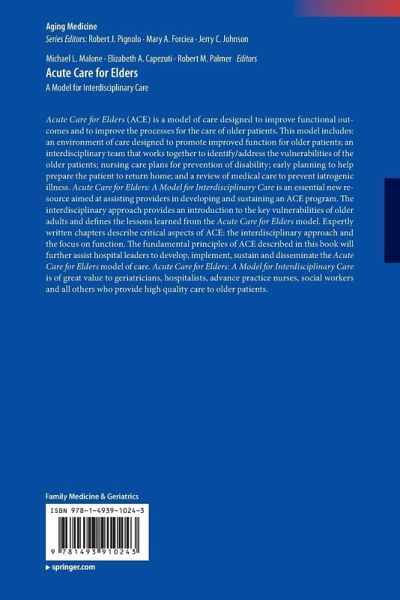 Acute Care for Elders: A Model for Interdisciplinary Care is an essential new resource aimed at assisting providers in developing and sustaining an ACE program. The interdisciplinary approach provides an introduction to the key vulnerabilities of older adults and defines the lessons learned from the Acute Care for Elders model. Expertly written chapters describe critical aspects of ACE: the interdisciplinary approach and the focus on function. The fundamental principles of ACE described in this book will further assist hospital leaders to develop, implement, sustain and disseminate the Acute Care for Elders model of care. Acute Care for Elders: A Model for Interdisciplinary Care is of great value to geriatricians, hospitalists, advance practice nurses, social workers and all others who provide high quality care to older patients.