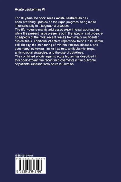 For 10 years the book series Acute Leukemias has been providing updates on the rapid progress being made internationally concerning this group of diseases. The fifth volume mainly addressed experimental approaches, but the present issue presents both therapeutic and prognostic aspects of the most recent results from major multicenter clinical trials. Additional chapters report new trends in leukemia cell biology,the monitoring of minimal residual disease, and secondary leukemias, as well as new antileukemic drugs, antimicrobial strategies, and the use of cytokines. The combined efforts against acute leukemias described in this book explain the recent improvements in the outcome of patients suffering from acute leukemias.