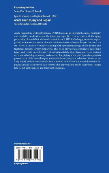 Acute Respiratory Distress Syndrome (ARDS) remains an important cause of morbidity and mortality worldwide, and the incidence is predicted to increase with the aging population Several clinical disorders can initiate ARDS, including pneumonia, sepsis, gastric aspiration and trauma but despite intense research over the past 40 years, we still have an incomplete understanding of the pathophysiology of the disease and treatment remains largely supportive. This book provides an overview of acute lung injury and repair, describes current animal models to study lung injury and reviews current methodologies to study and measure lung injury and repair. Special emphasis is given to state of the art techniques and methods and relevance to human disease. Acute Lung Injury and Repair: Scientific Fundamentals and Methods is a useful resource for physicians and scientists who are interested in experimental model systems for insight into ARDS pathogenesis and treatment strategies.
