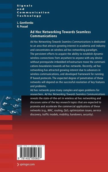 Ad-Hoc Networking Towards Seamless Communications is dedicated to an area that attracts growing interest in academia and industry and concentrates on wireless ad hoc networking paradigm. The persistent efforts to acquire the ability to establish dynamic wireless connections from anywhere to anyone with any device without prerequisite imbedded infrastructure move the communications boundaries towards ad-hoc networks. Recently, ad hoc networking has attracted growing interest due to advances in wireless communications, and developed framework for running IP based protocols. The expected degree of penetration of these networks will depend on the successful resolution of the key features.