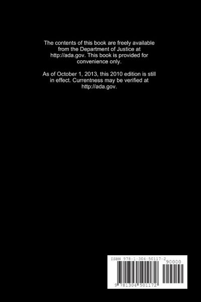 This is simply a reprint of the ADA Standards for Accessible Design that are freely available at ada.gov, provided for convenience in small paperback format. It is in the public domain. Distribute and copy this book freely. This 2010 edition is still current as on October 2013. You can check whether there is a newer edition at ada.gov.