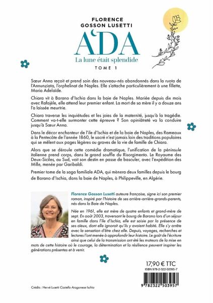 Soeur Anna prend soin des nouveaux-nés abandonnés dans la ruota de l'Annunziata, l'orphelinat de Naples. Elle s'attache tout particulièrement à une fillette, Maria Adelaide. Chiara vit à Barano d'Ischia dans la baie de Naples. Mariée depuis dix mois avec Rafajèle, elle attend leur premier enfant. La mort de sa mère douze ans auparavant l'a laissée meurtrie. Chiara traverse les inquiétudes et les joies de la maternité. Elle va devoir surmonter la tragédie. Son opiniâtreté la conduira jusqu'à soeur Anna.Dans le décor enchanteur de l'île d'Ischia, des Rameaux à la Pentecôte 1860, le sacré n'est jamais loin des traditions populaires qui se mêlent aux pages légères ou graves de la vie de Chiara. Alors qu'elles se déroulent, l'unification de la péninsule italienne prend corps, dans le grand souffle du Risorgimento. Le royaume des Deux-Siciles voit son destin en passe de basculer, avec l'expédition des Milles, menée par Garibaldi.